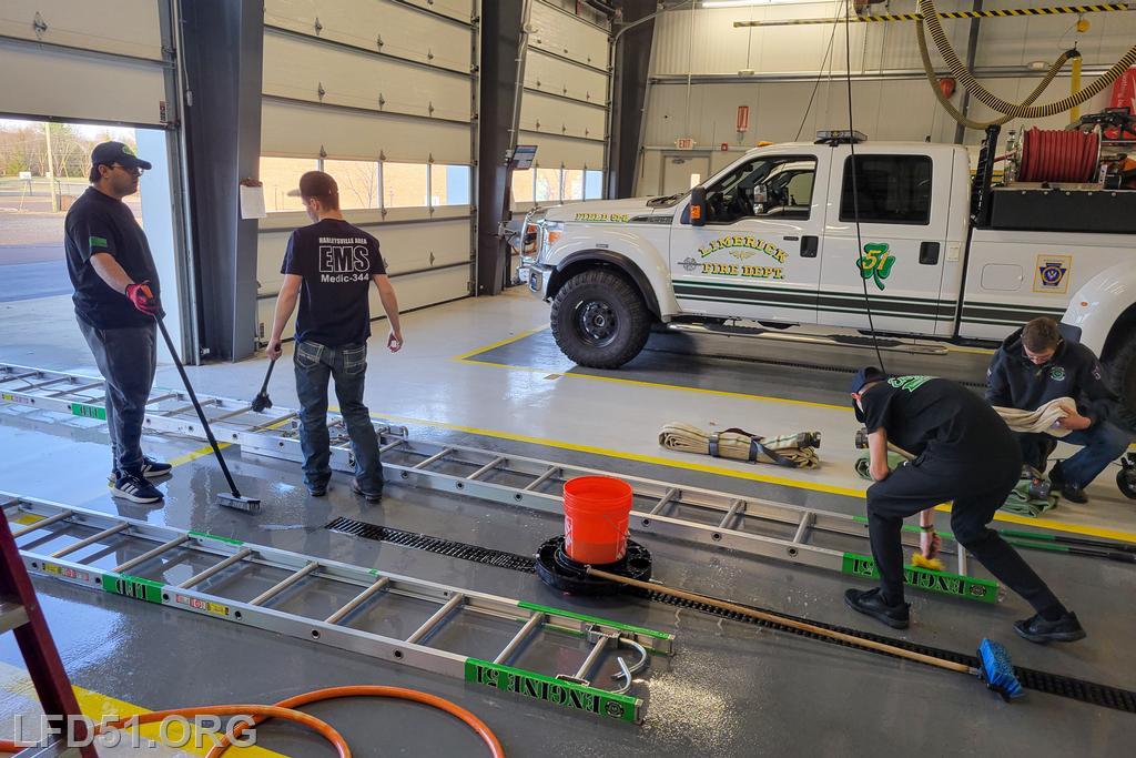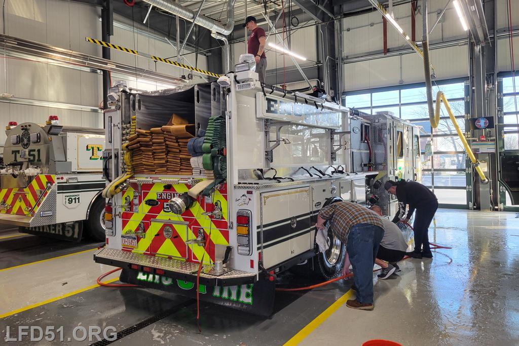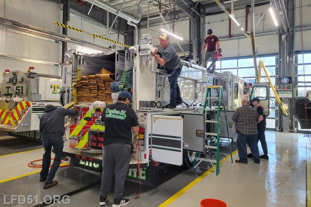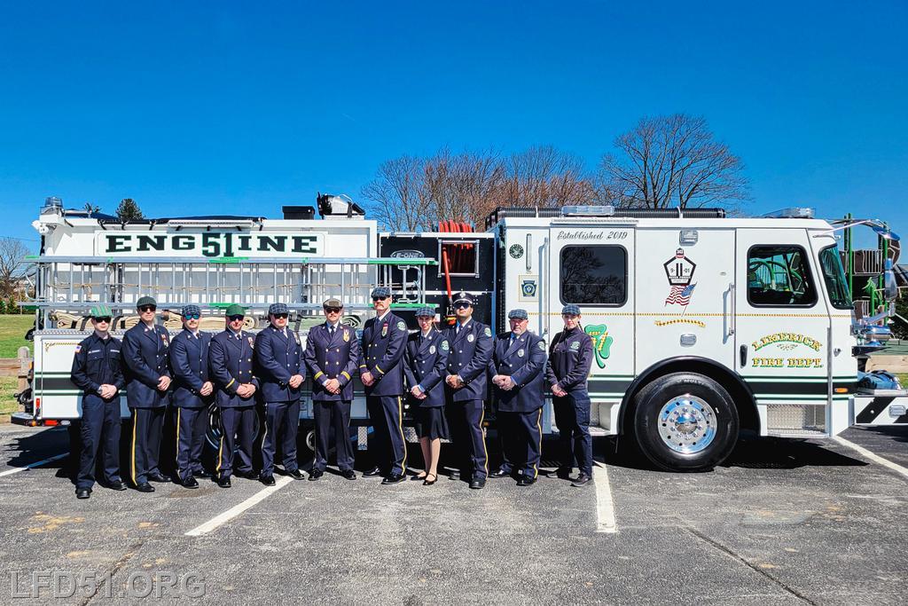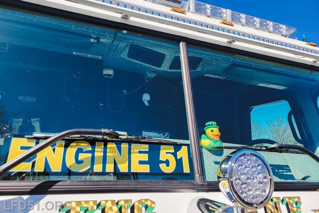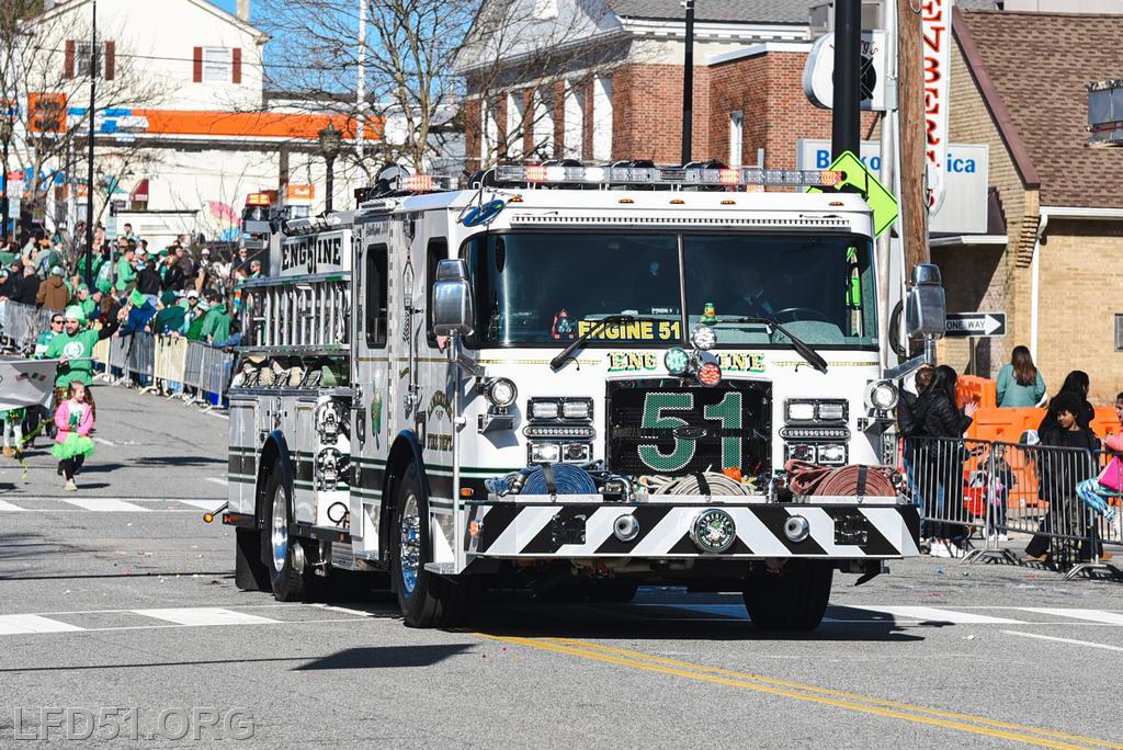 | Several of our members participated in the annual St. Patrick's Day Parade in Conshohocken on March 14. The evening before, crews washed and waxed Engine 51 until it shone, preparing it for parade presence! Our firefighters marched alongside other Montgomery County firefighters during the parade. It was a beautiful day for a parade with a great crowd! |