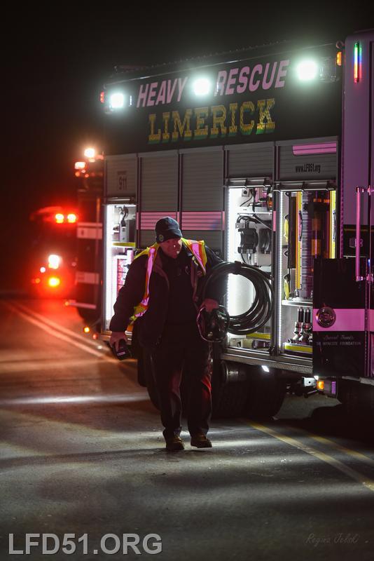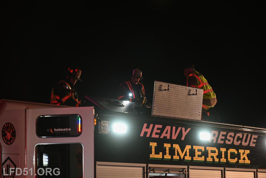 | At 7:09 pm, the Limerick Fire Department was dispatched to a reported vehicle rescue on Country Club Rd. Chief 51, Assistant 51, Rescue 51, Engine 51, Trappe Engine 77, Limerick Police, Limerick and Trappe Fire Police, and Freedom Valley EMS responded to the scene.