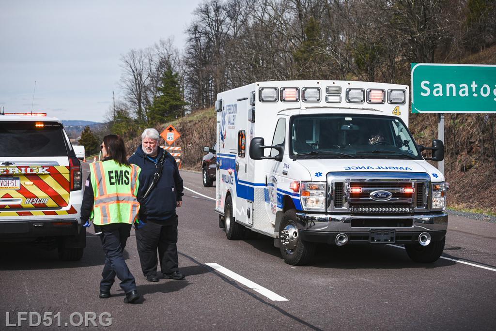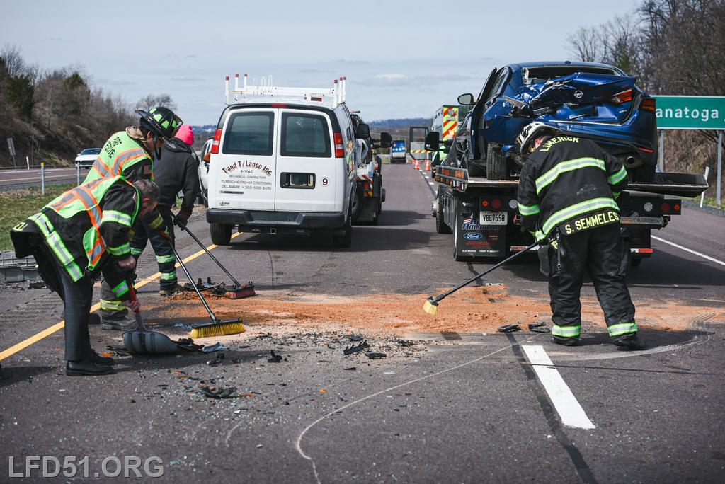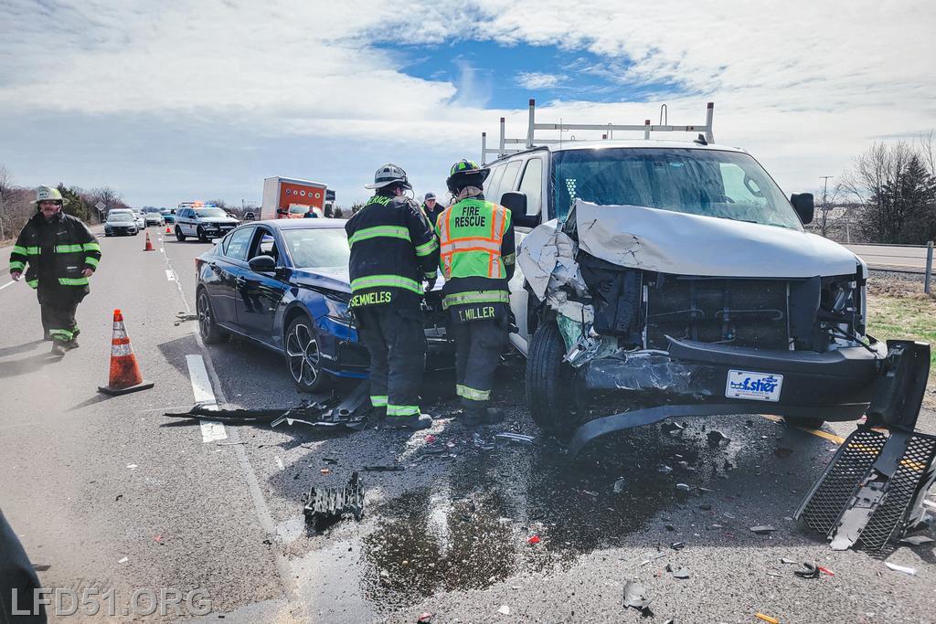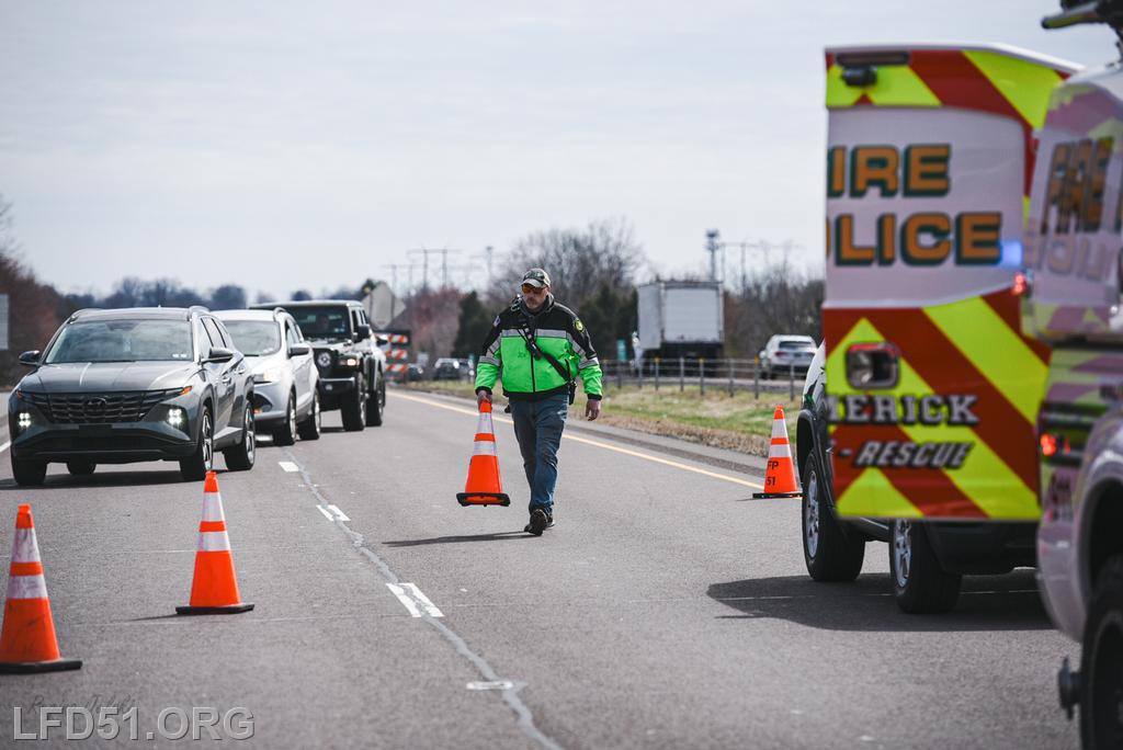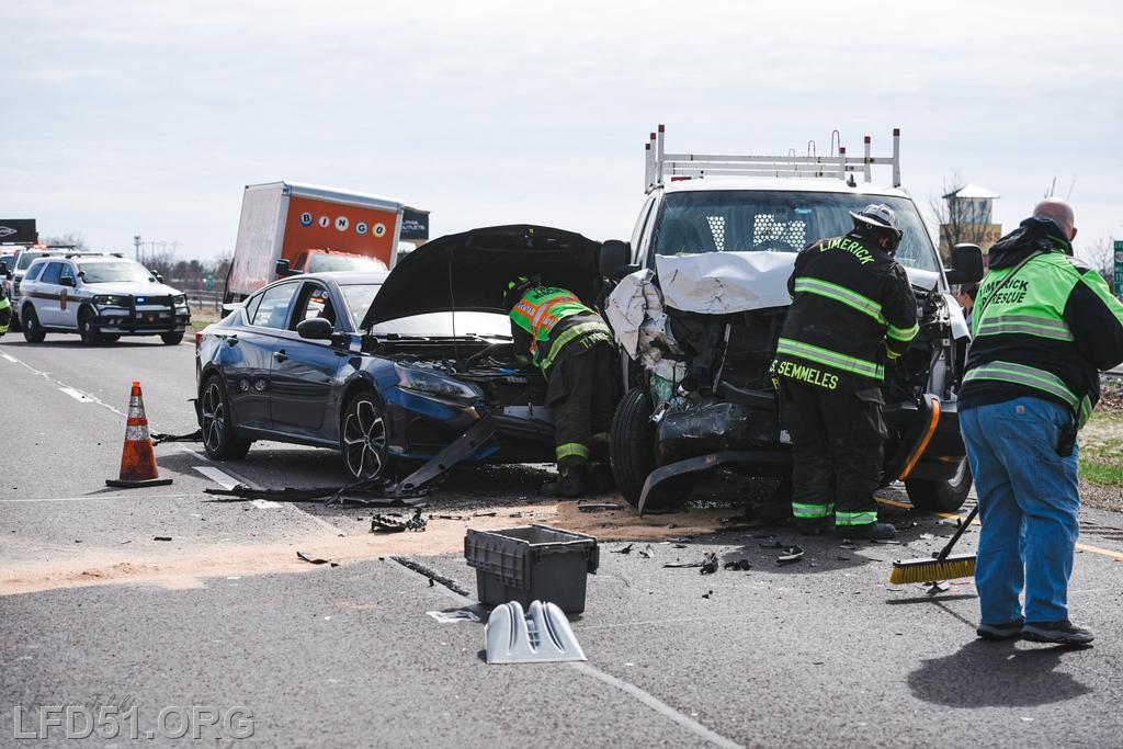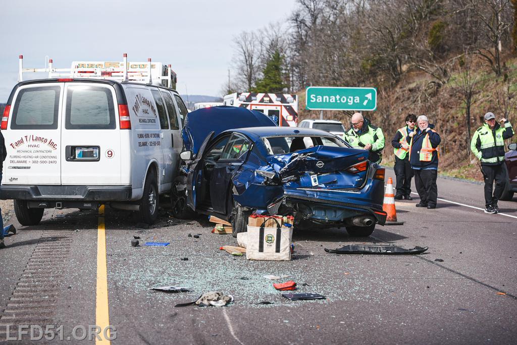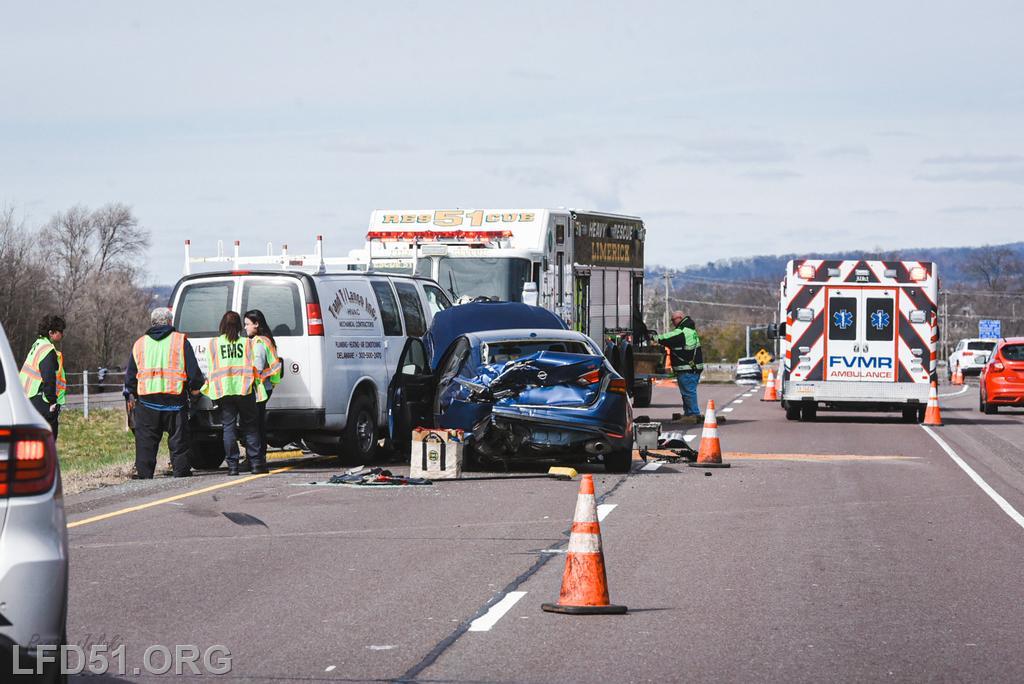 | At 12:04 pm on March 18, the Limerick Fire Department was dispatched to a four-vehicle accident on Route 422 WB. Deputy 51, Chief 51, Rescue 51, 51 Fire Police, Freedom Valley EMS, and PA State Police responded. Dispatch reported there were conflicting reports on whether anyone was entrapped. Deputy 51 arrived, confirmed that one occupant was trapped in their vehicle, and assumed 422 Command.