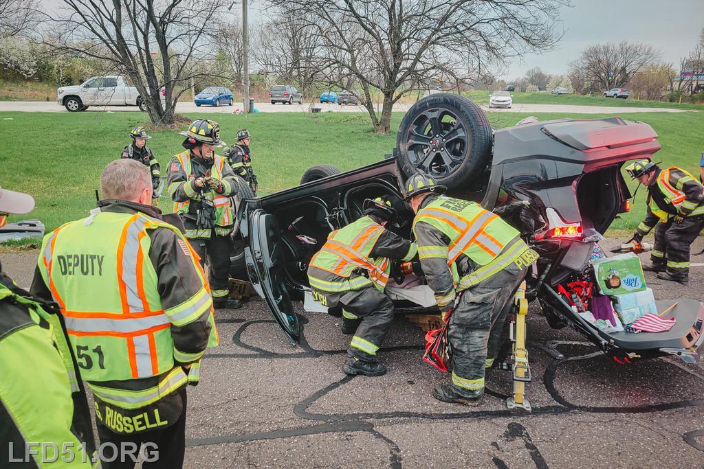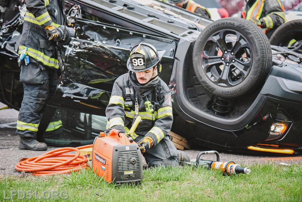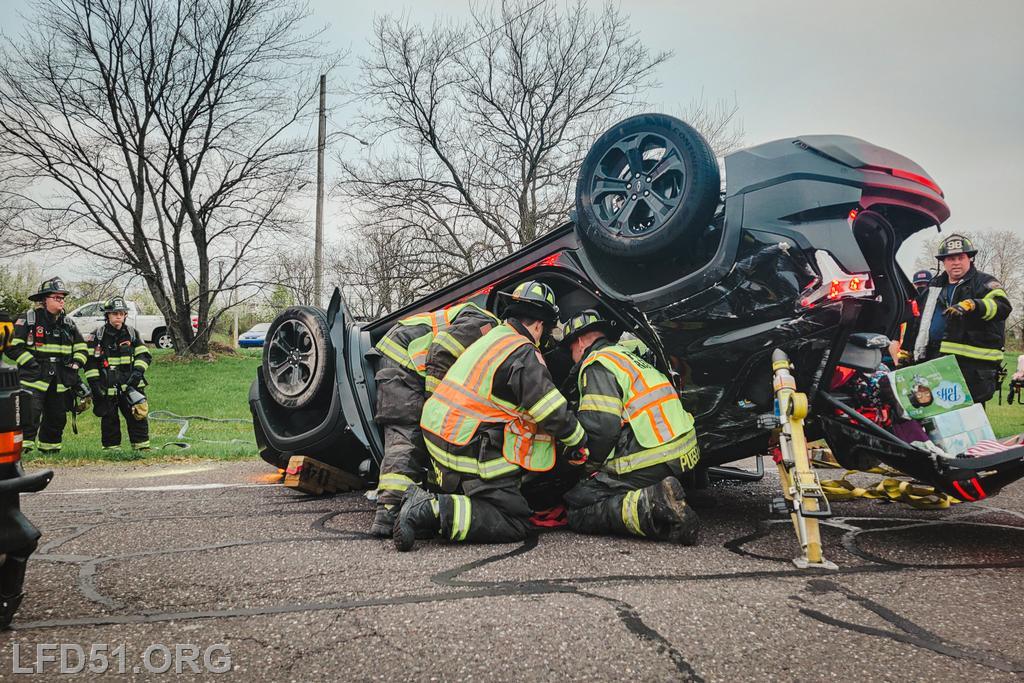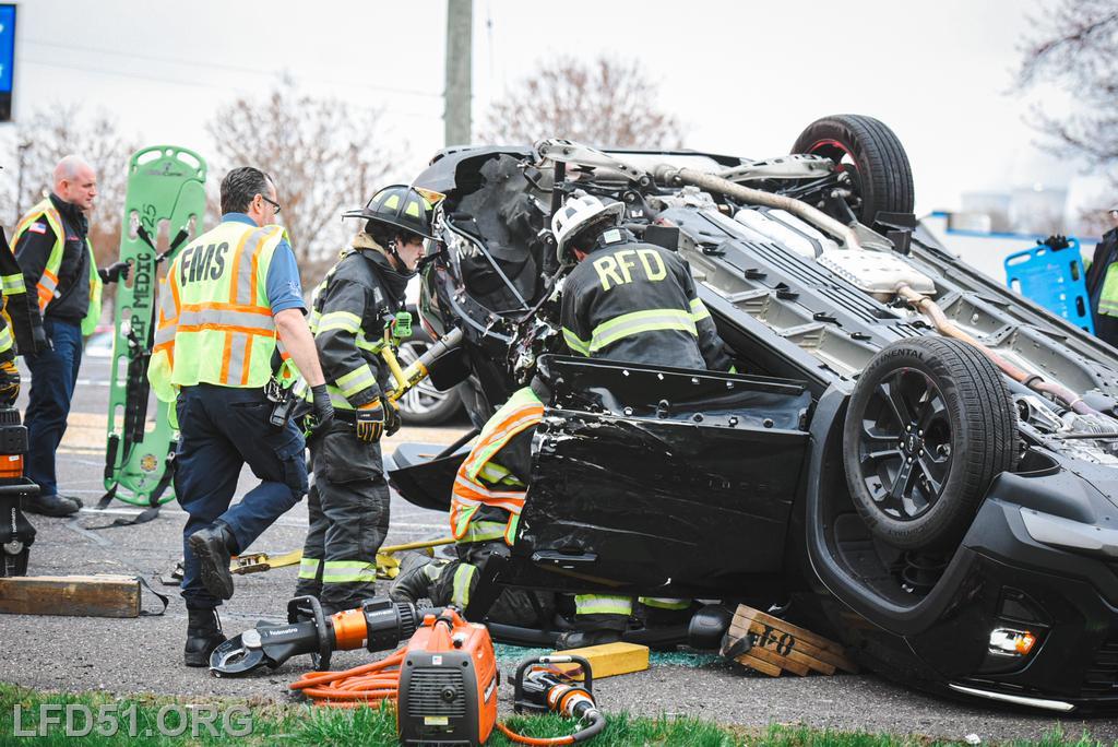 Deputy 51 arrived on scene, assumed N. Lewis Road Command, and reported two occupants trapped in an overturned vehicle. Crews from Rescue 51 operated on the driver’s side, while Rescue 98’s crews worked on the passenger side. To access the patients, crews removed both the front and rear doors of the vehicle. The patients were safely extricated after the sides of the vehicle were completely removed and were then turned over to EMS for evaluation and treatment. Rescue operations were completed at 7:34 a.m.