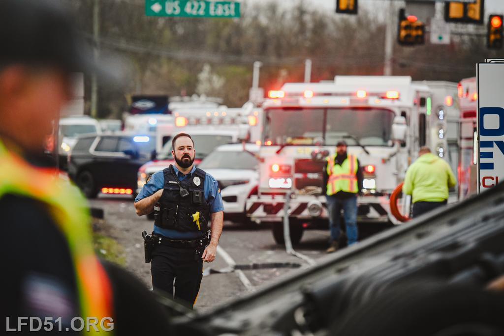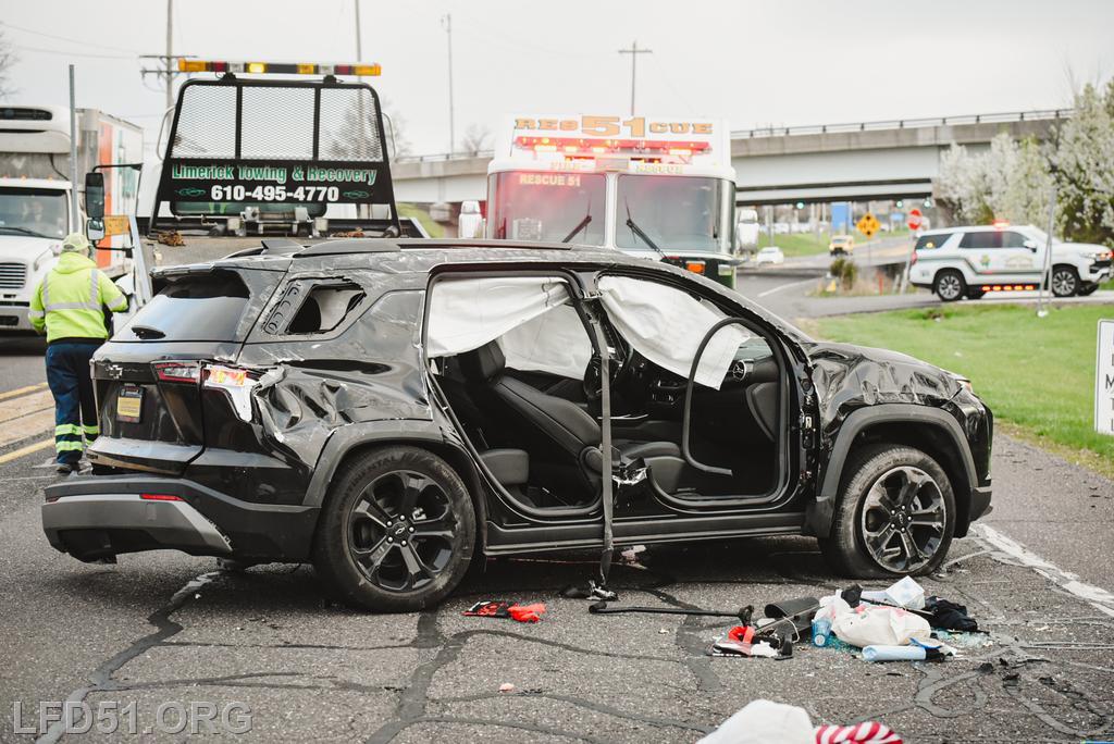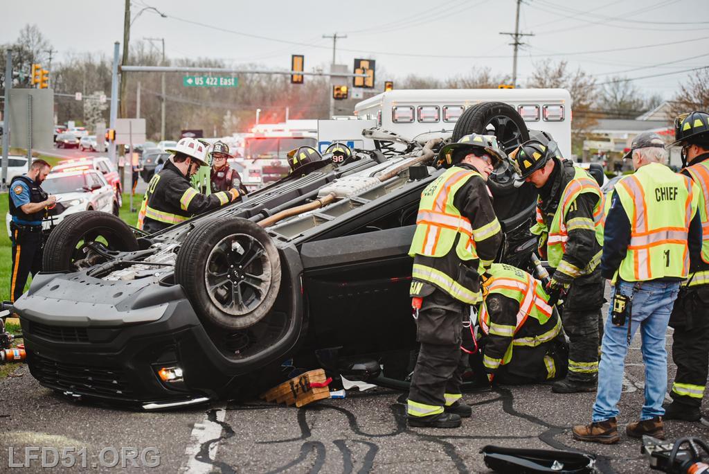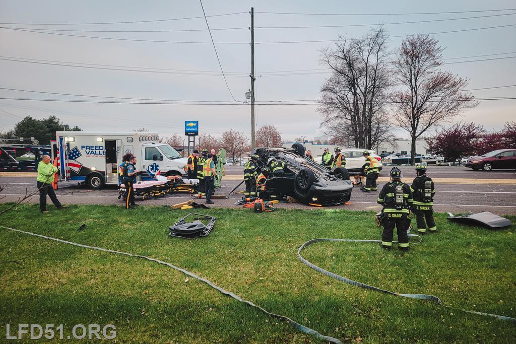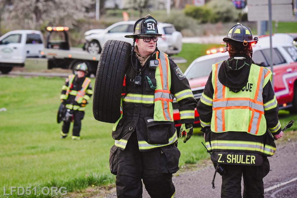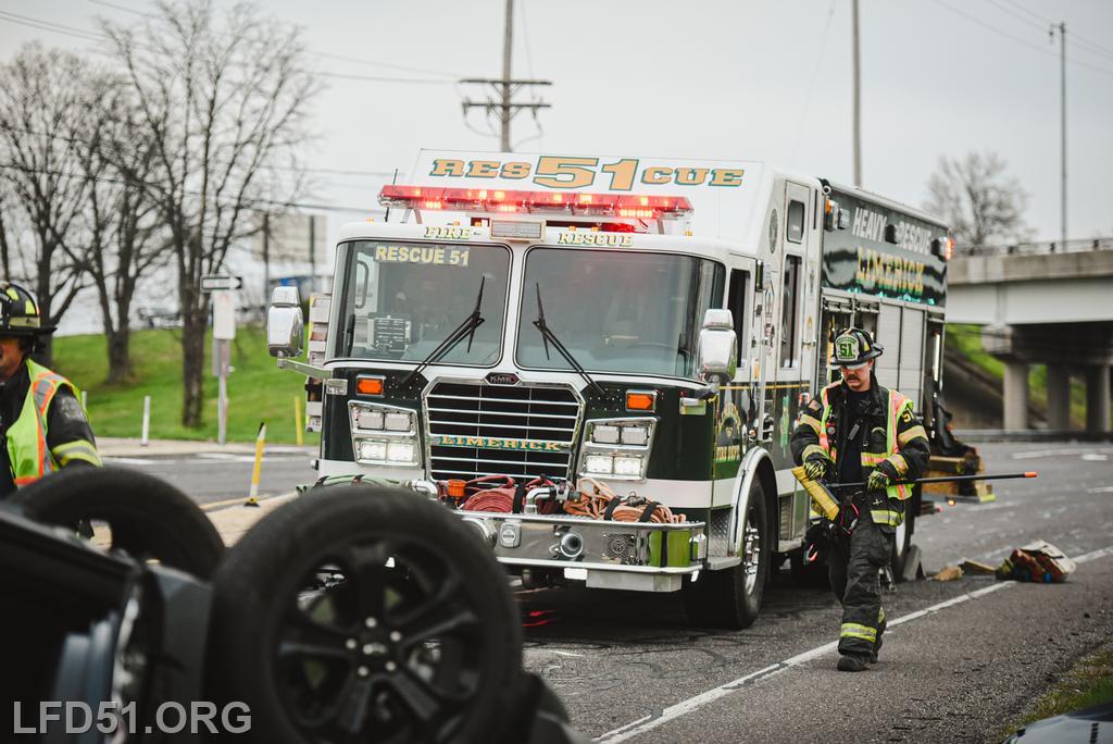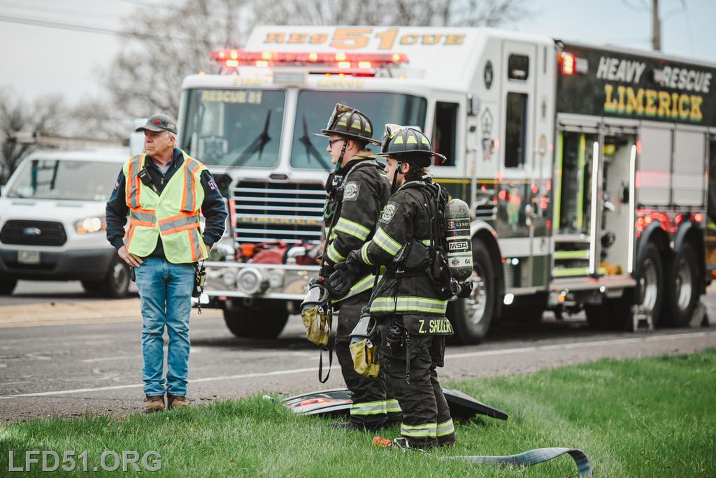 | At 7:02 am on April 10, the Limerick Fire Department was dispatched to a vehicle accident with injuries on N Lewis Rd. Two minutes later, dispatch upgraded the incident to a vehicle rescue after a vehicle was reportedly flipped with one person trapped inside, unconscious. Chief 51, Deputy 51, Assistant 98, Rescue 51, Squad 51, 51 Fire Police, Rescue 98, Limerick Police, Freedom Valley EMS, and Friendship Ambulance responded.