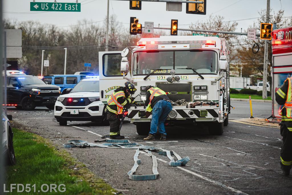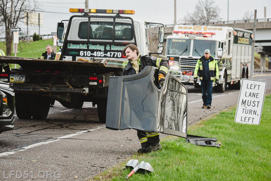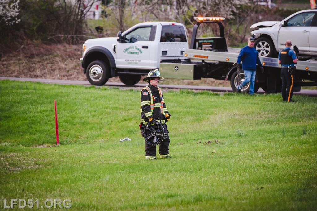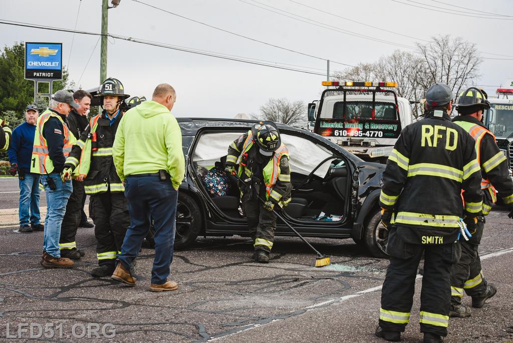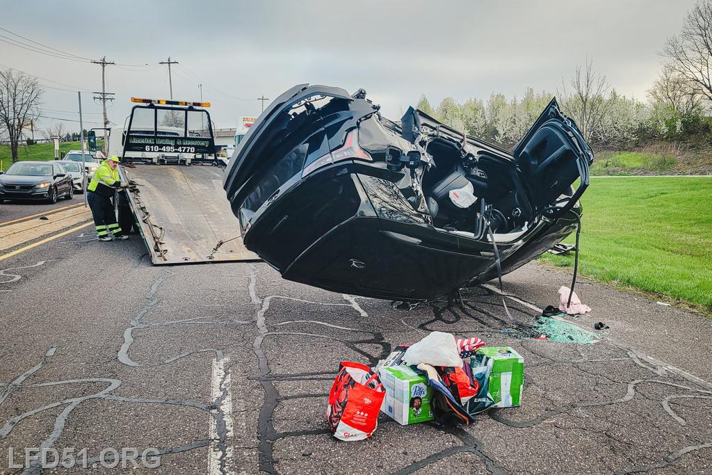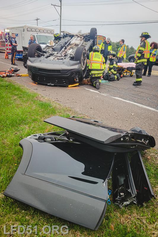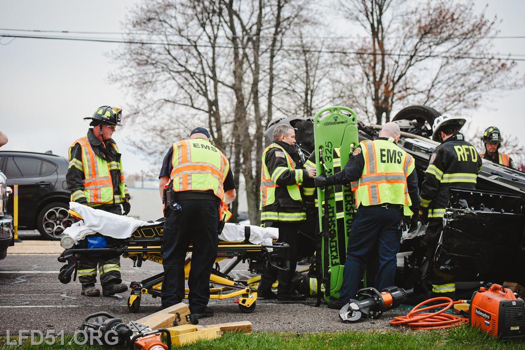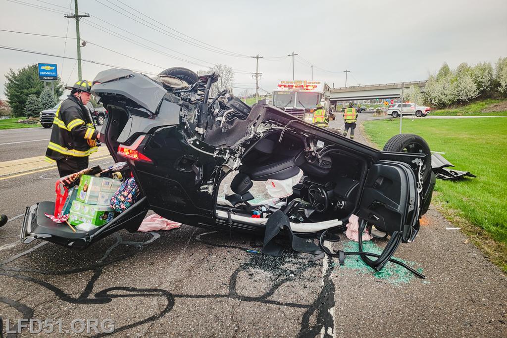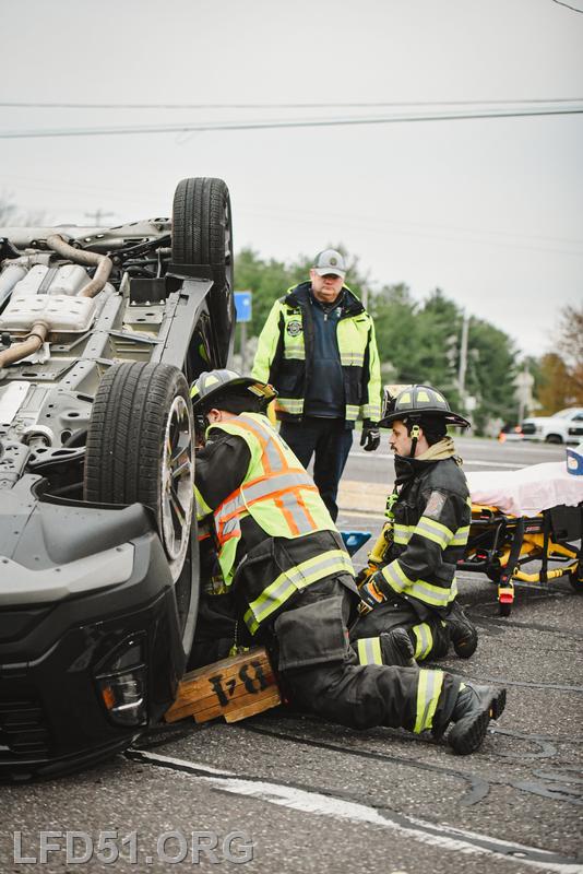 The driver of the other involved vehicle was unharmed. Crews cleaned the debris from the roadway as tow trucks arrived to remove both involved vehicles. Fire Police directed the traffic in the intersection for the duration of rescue operations, and the roadway was open at 8:17 am.