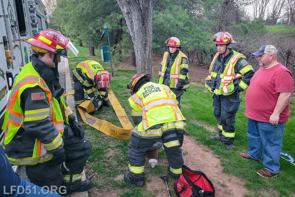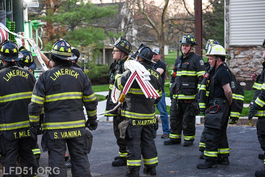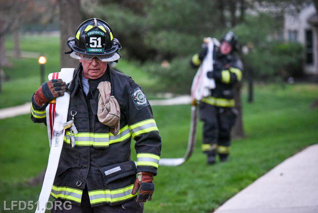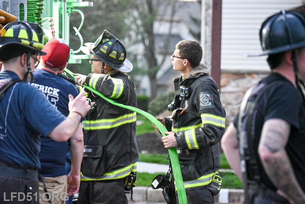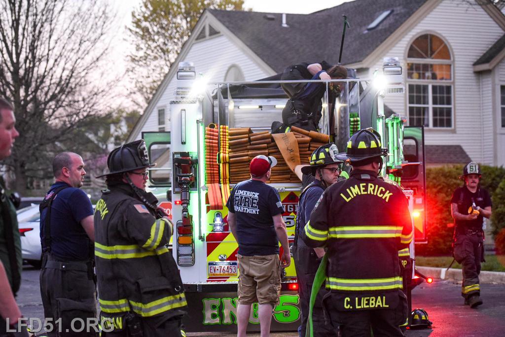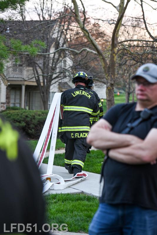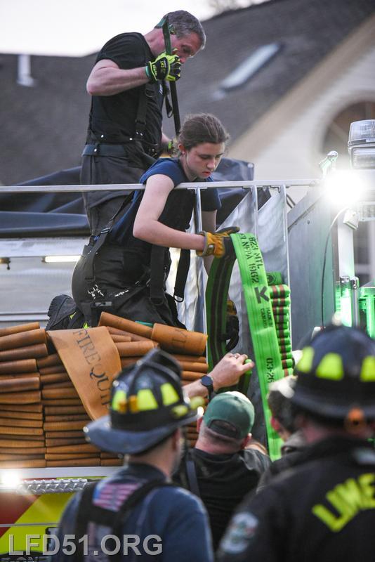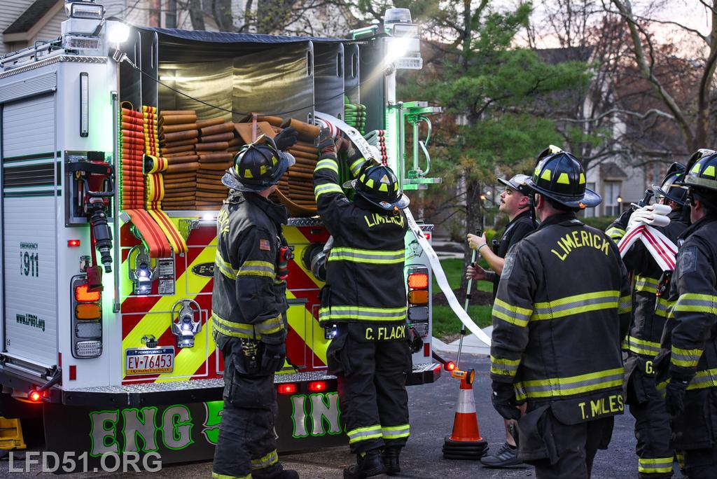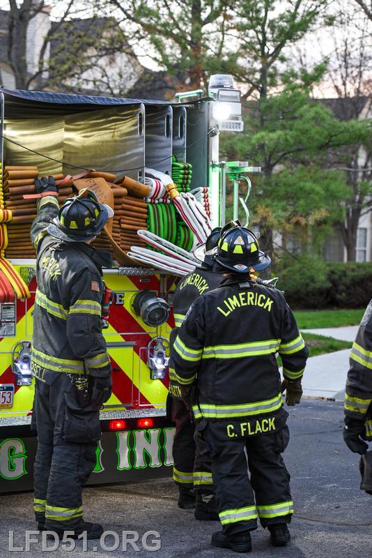 | Last Monday, April 13, Limerick crews headed to the Montgomery Brook development to practice deploying new hose from Engine 51 and to develop techniques for better hose packing. Crews took turns deploying a static 600 line, walking the line through Montgomery Brook, before packing it all back on Engine 51 and repeating the process. Residents in the area enjoyed a chance to interact with their local heroes, and some of the kids got to explore Engine 51! |