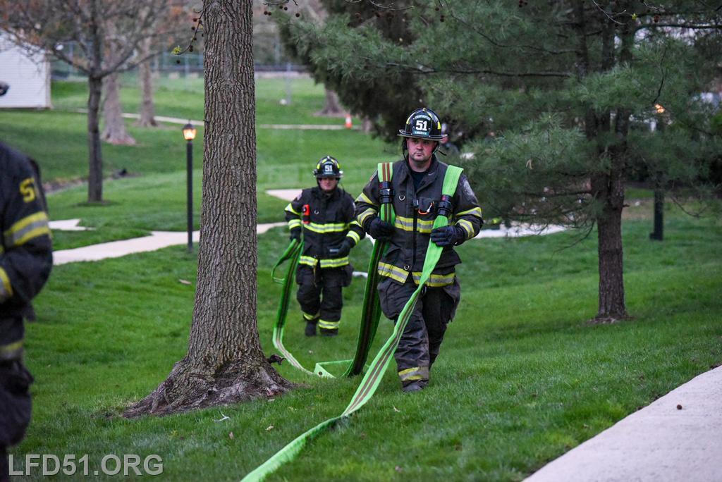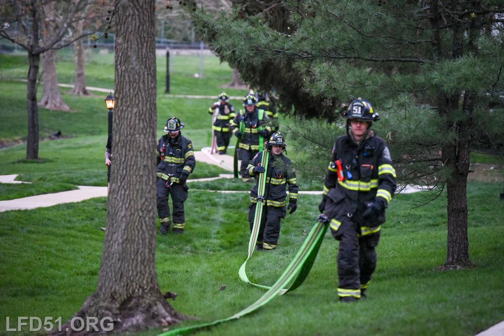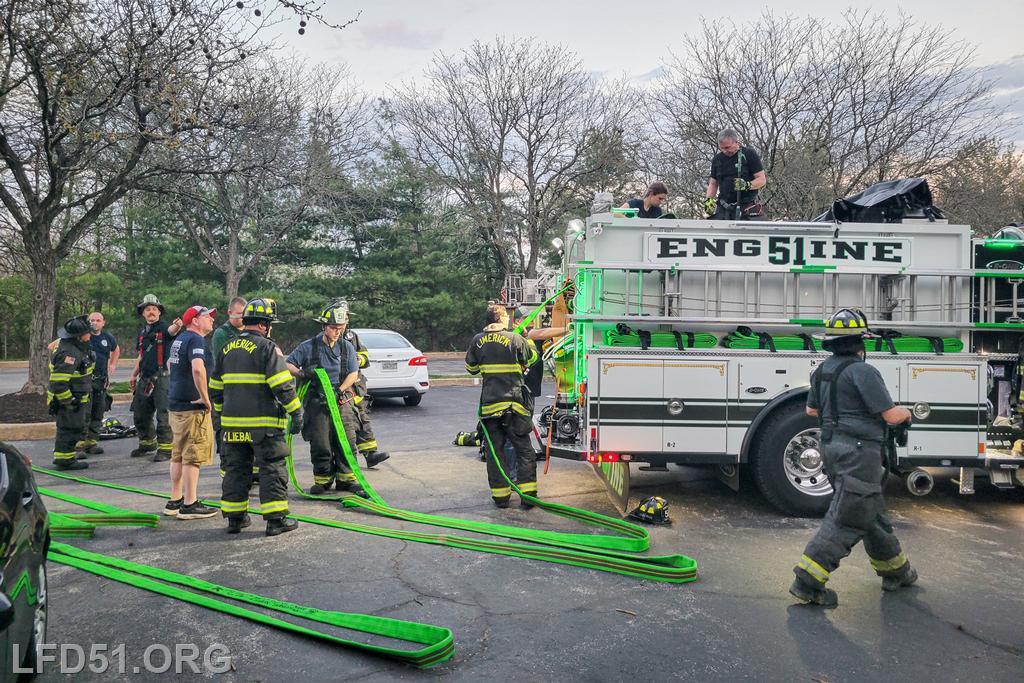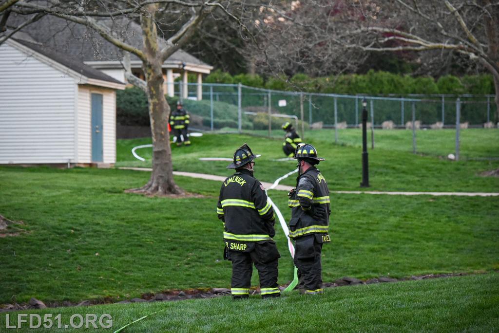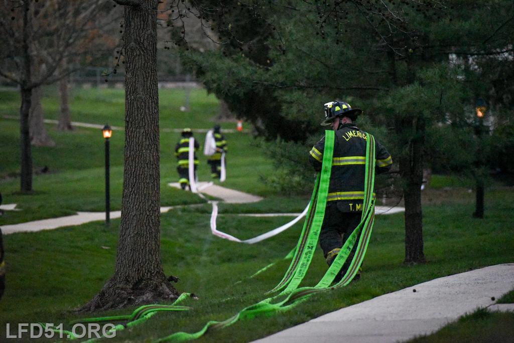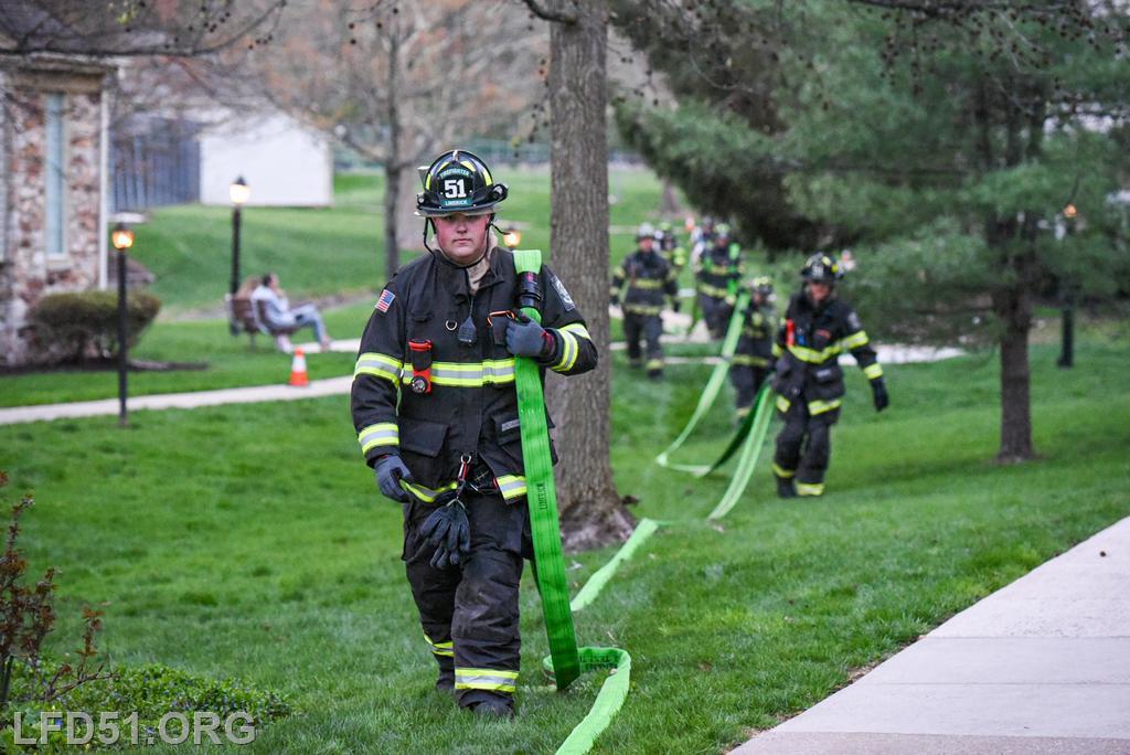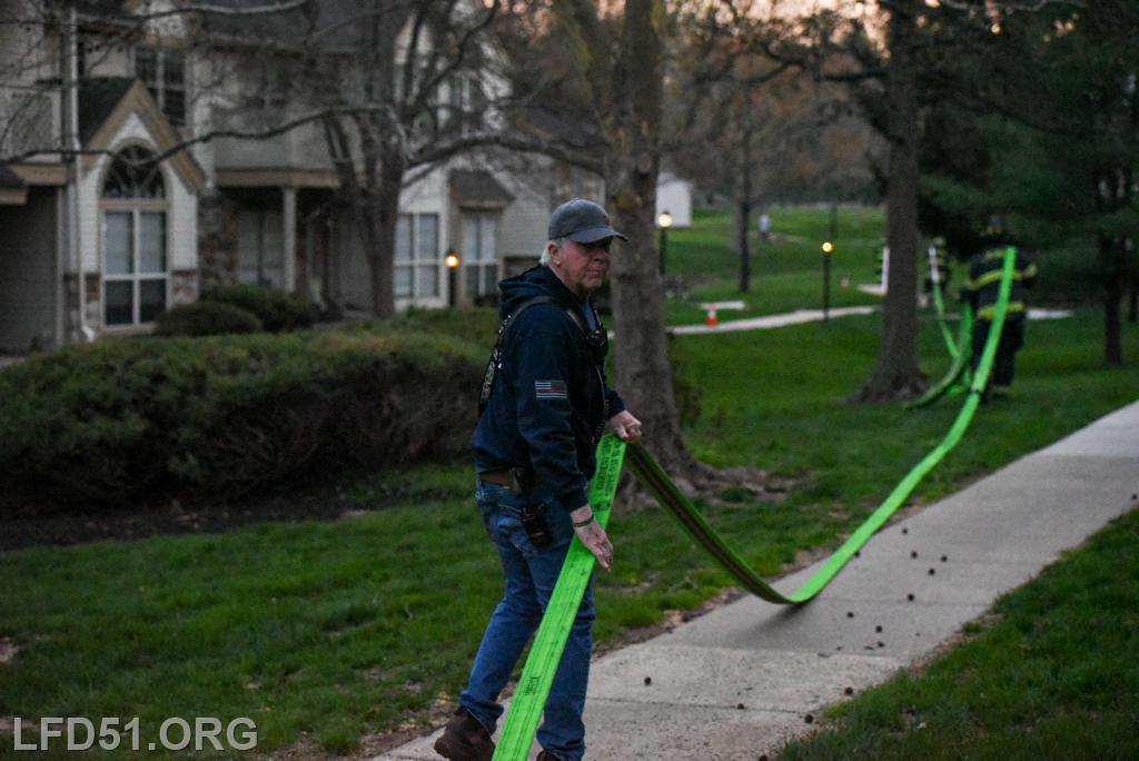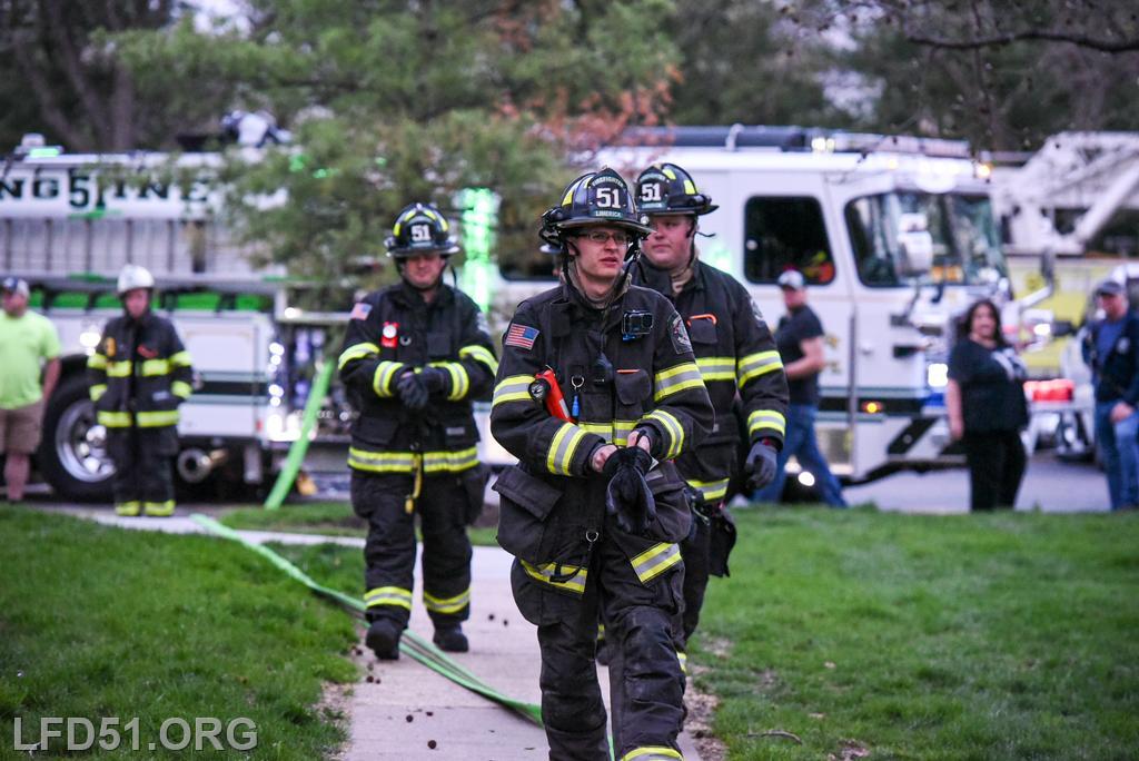 | Last Monday, April 13, Limerick crews headed to the Montgomery Brook development to practice deploying new hose from Engine 51 and to develop techniques for better hose packing. Crews took turns deploying a static 600 line, walking the line through Montgomery Brook, before packing it all back on Engine 51 and repeating the process. Residents in the area enjoyed a chance to interact with their local heroes, and some of the kids got to explore Engine 51! |